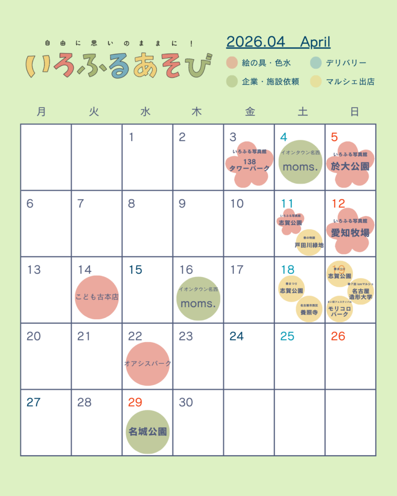 いろふるあそびは、愛知県近郊(名古屋市・岡崎市・一宮市など)で活動しています